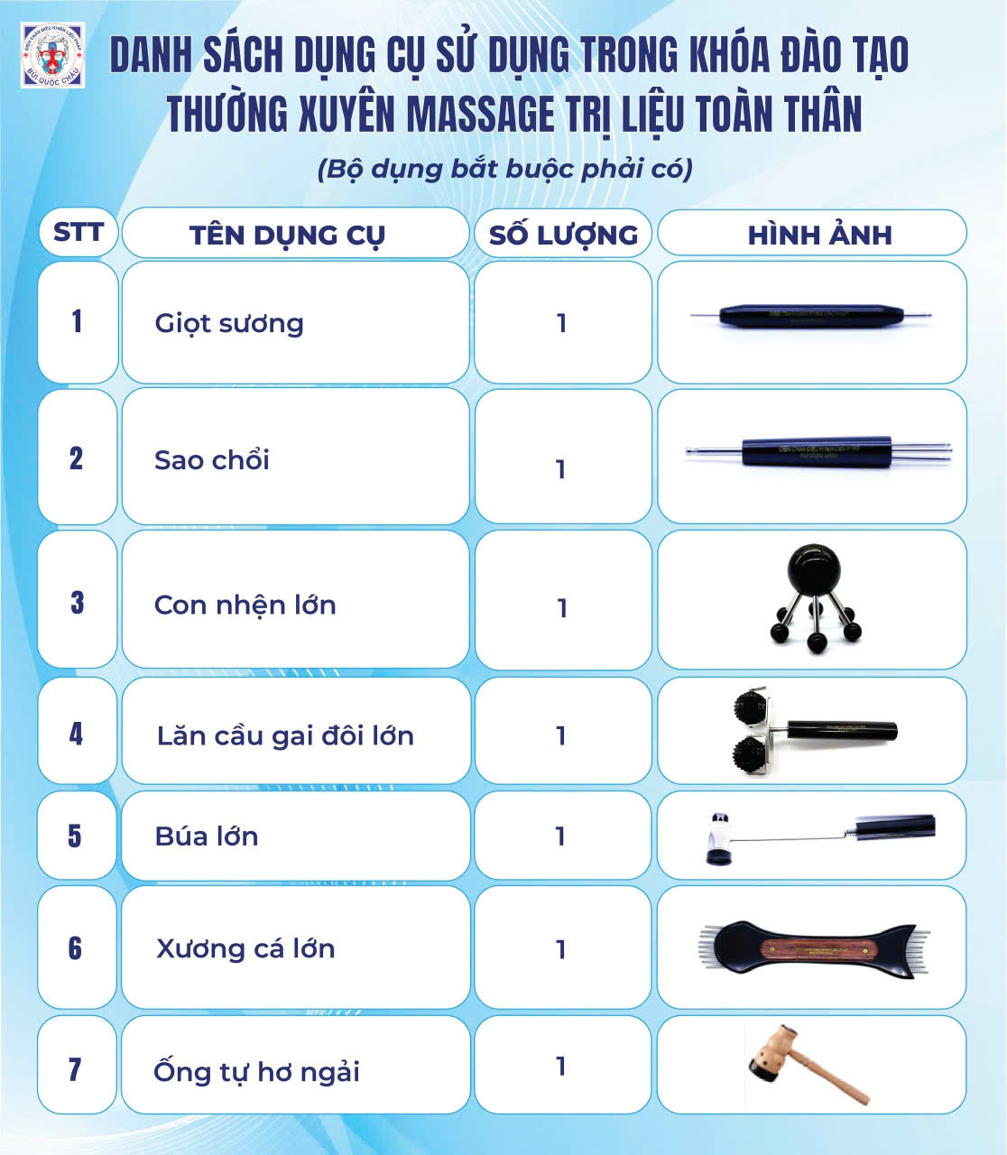 DANH SÁCH DỤNG CỤ DÙNG TRONG KHÓA HỌC