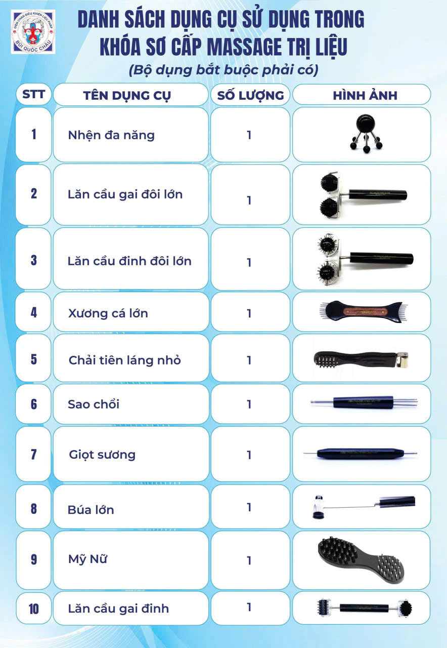 + Nhóm kỹ thuật tác động bằng dụng cụ hỗ trợ (5 buổi).
